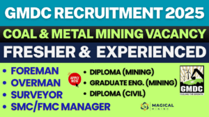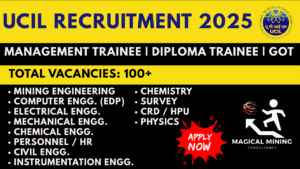 | Mining Engineering | Managerment Trainee | 07 (UR-04, EWS-01, OBC-NCL-02) | 28 Yrs | Bachelor of Mining Engg. | ₹40,000/- + DA |